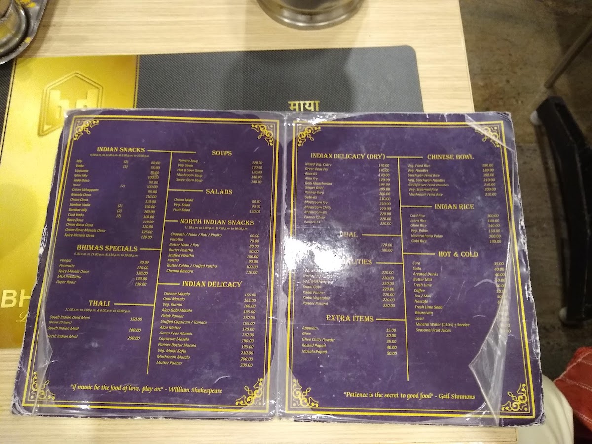 Welcome to Bhimas Maya Restaurant, an authentic South Indian culinary gem located just 100 meters away from the Railway Station on G Car St in Tirupati. Step inside to find a warm ambiance with a delightful array of vegetarian dishes that celebrate the rich flavors of traditional South Indian cuisine.
